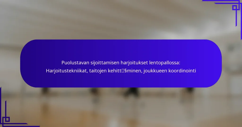Puolustavan sijoittamisen harjoitukset lentopallossa: Harjoitustekniikat, taitojen kehittäminen, joukkueen koordinointi
