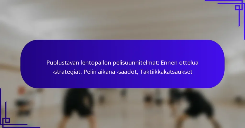 Puolustavan lentopallon pelisuunnitelmat: Ennen ottelua -strategiat, Pelin aikana -säädöt, Taktiikkakatsaukset