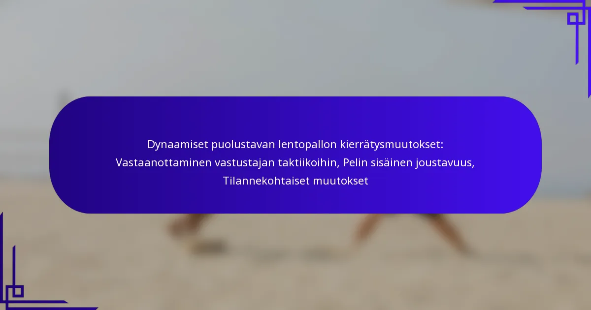 Dynaamiset puolustavat lentopallokierrot ovat joustavien strategioiden joukko, jota joukkueet käyttävät mukauttaakseen muodostelmiaan vastustajan taktiikoihin ottelun aikana. Nämä kierrot mahdollistavat pelaajien optimoinnin sijoittumisessaan ja parantavat puolustuksen tehokkuutta, mikä lopulta parantaa koko joukkueen suoritusta.