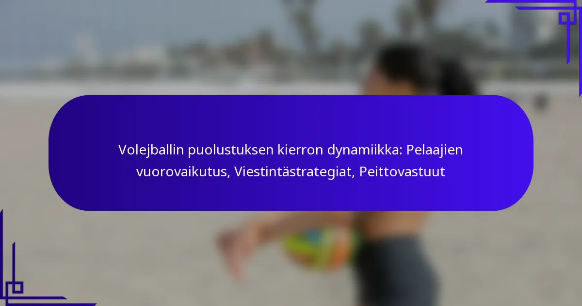 Volleynpelissä puolustuksen kiertodynamiikka perustuu avainpelaajien vuorovaikutukseen, jossa viestintä ja sijoittuminen ovat keskeisessä roolissa. Yksilöllisten peittovastuiden ymmärtäminen on olennaista tehokkaalle tiimityölle, mikä mahdollistaa pelaajien tukemisen toisilleen ja sopeutumisen pelin nopeaan luonteeseen. Selkeän viestinnän edistäminen voi parantaa joukkueiden puolustusstrategioita ja ylläpitää vahvaa peittoa kentällä.